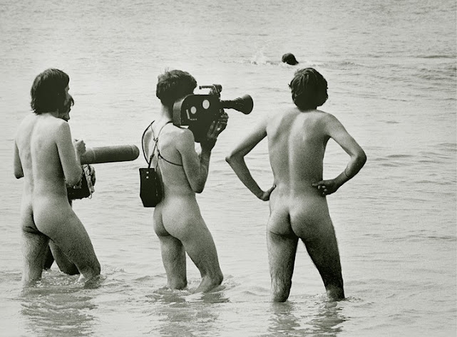 At the 1970 festival, this TV camera crew showed up, wanting to record the nudity in the bay. Some hippie guards told them that if they wanted access, they had to strip naked themselves. So they did. Well, fair is fair!