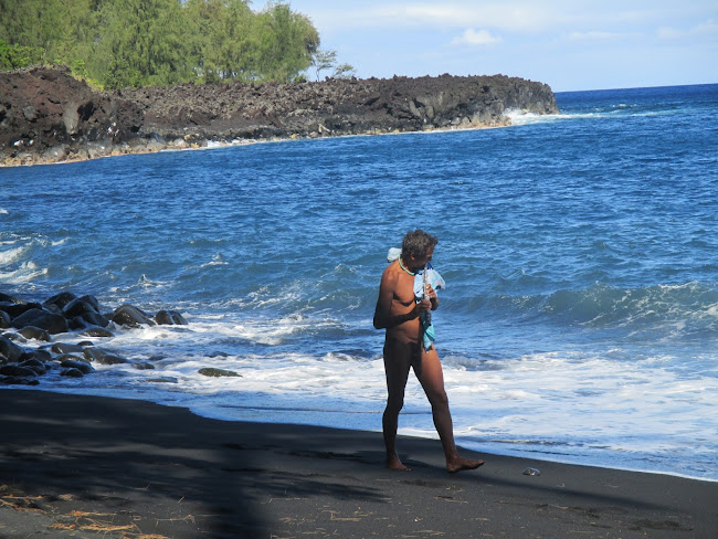 It was always clothing optional; some people were nude and some weren't. It was also a haven for the free spirits of the world like the hippies who gravitated to this part of Hawaii, which is known as the Puna district. This guy is just hanging out (literally) and playing his flute.
