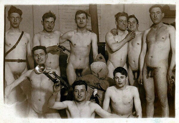 Another vintage photo of soldiers with a bugle, thought to date from between the world wars. I got this photo from Vintage Muscle Men. Thanks, Jerry!